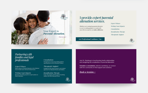 We partnered with Dr. Lynn Steinberg to refresh and expand her brand identity, ensuring it reflects her authority in the field while remaining accessible and emotionally resonant for her diverse audience of parents, lawyers, and mental health professionals.